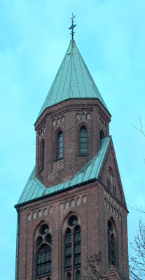 Ein Blickfang für Spaziergänger in den Rehwiesen ist der überhohe Turmhelm, der mit einen Anteil von 62% an der Gesamthöhe des Kirchturms (47 m bis zur Kugel) diesen fast exakt im Verhältnis des "Goldenen Schnitts (61,8%)" teilt.